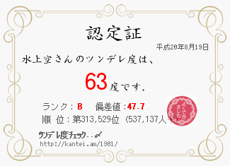 何だか気が向いたので、ツンデレ度チェックをやってみました。